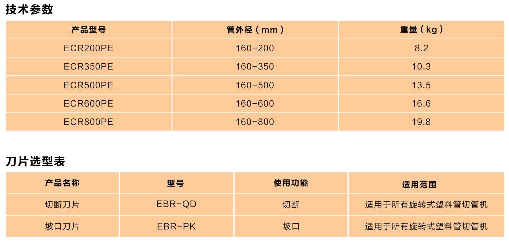 自動管子割刀常見的有爬管式管道切割坡口機和分瓣式切割坡口機。自動管子割刀型號尺寸表如下: