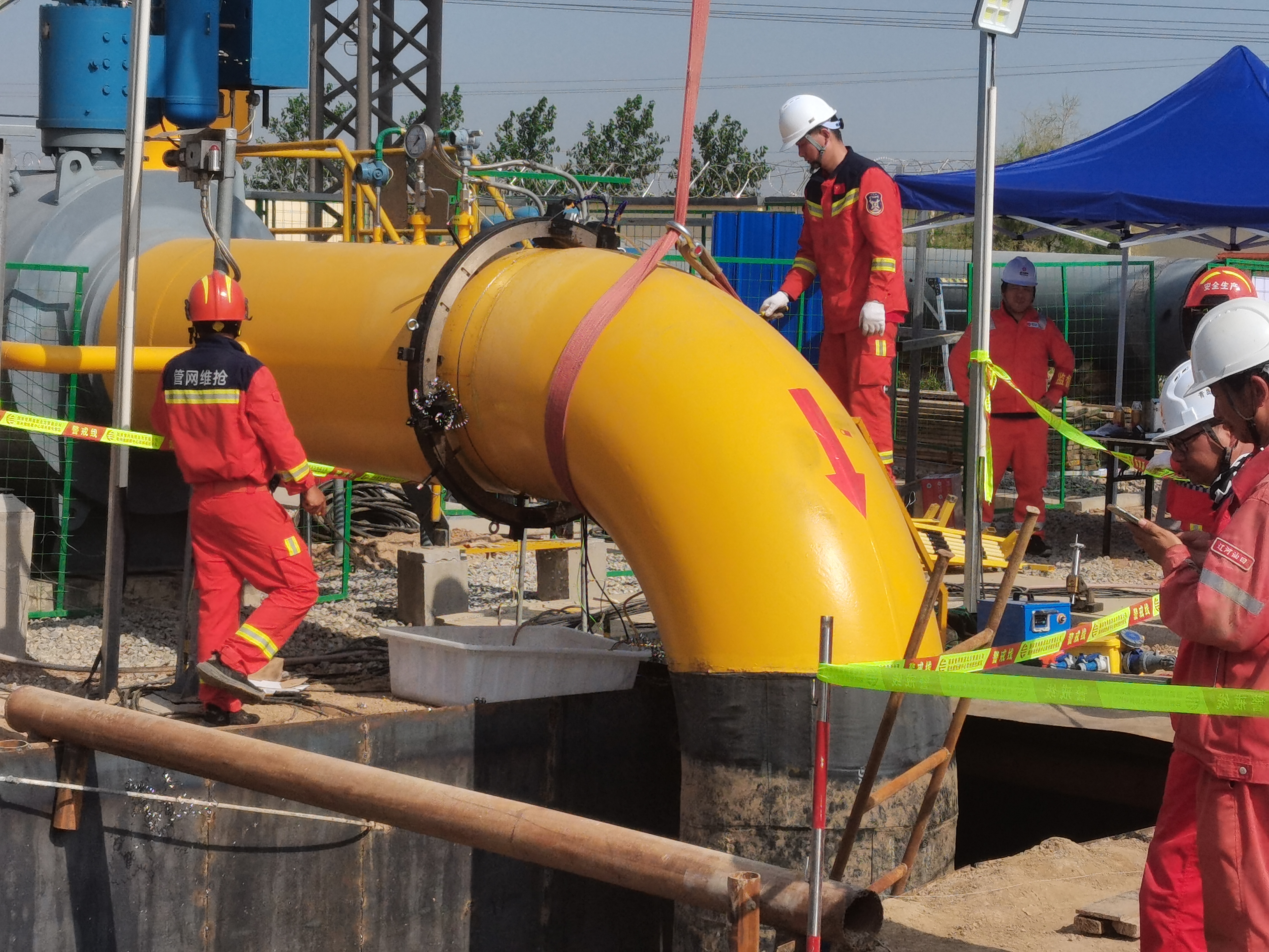 本次改造涉及7處動火點采用設備:,分別與站內管線、放空管線、排污管線等進行連接,本次管網1016mm維搶修作業易沃克廠家安排技術人員來到現場指導設備分瓣式切割坡口機帶氣切割坡口作業,管網維搶現場作業人員對于內外坡口效果滿意.