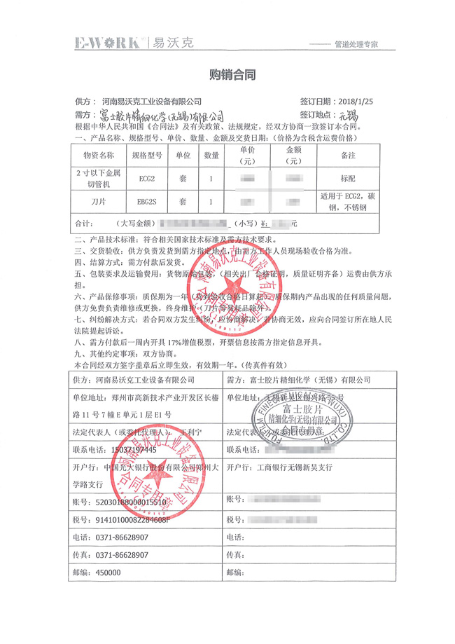 2018年富士膠片精細化學(無錫)有限公司合作業績