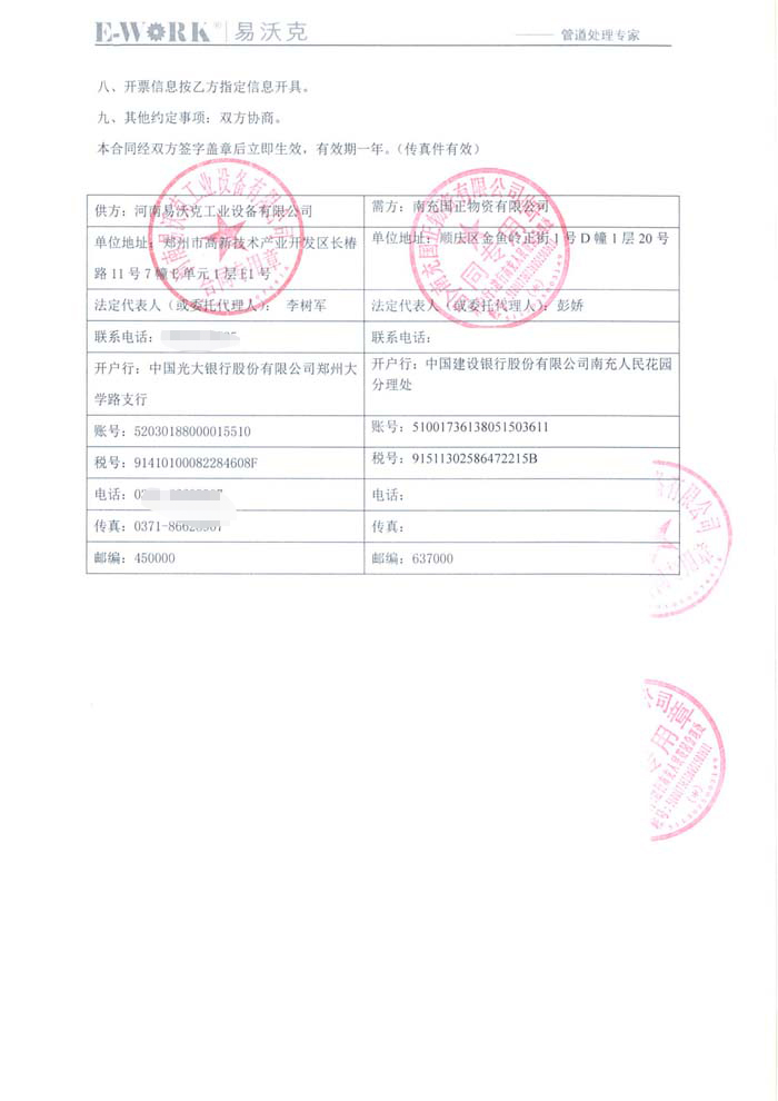 2016年南充國正物資有限公司合作業績
