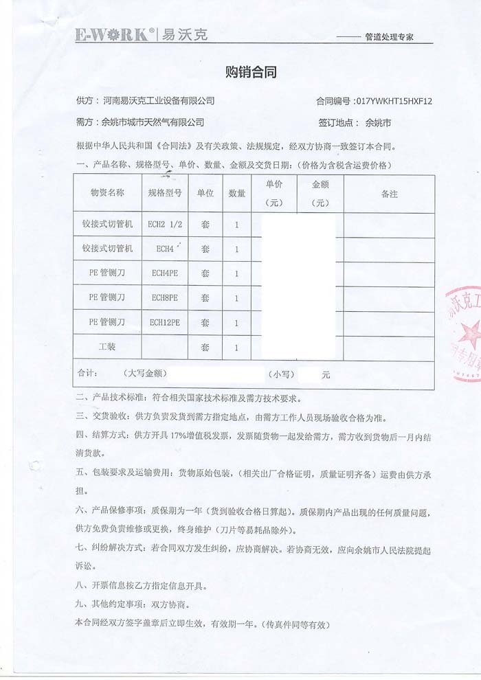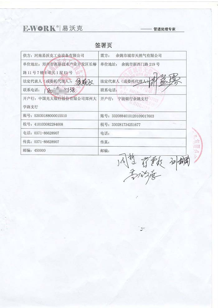 2015年浙江余姚市城市天然氣有限公司合作業績