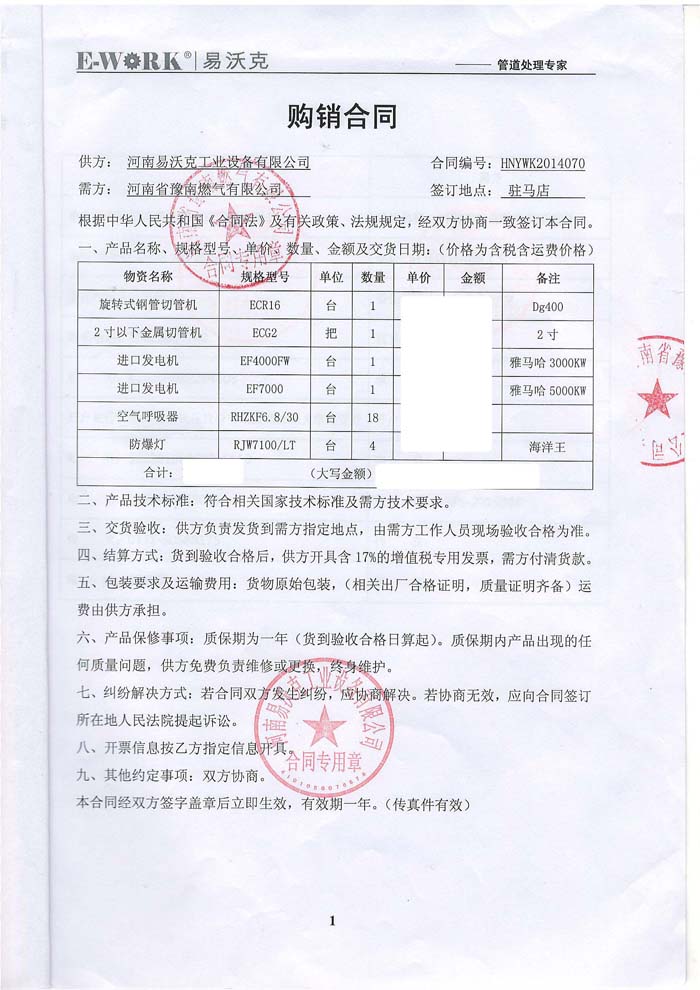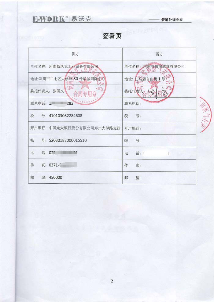 2014年河南省豫南燃氣有限公司合作業績