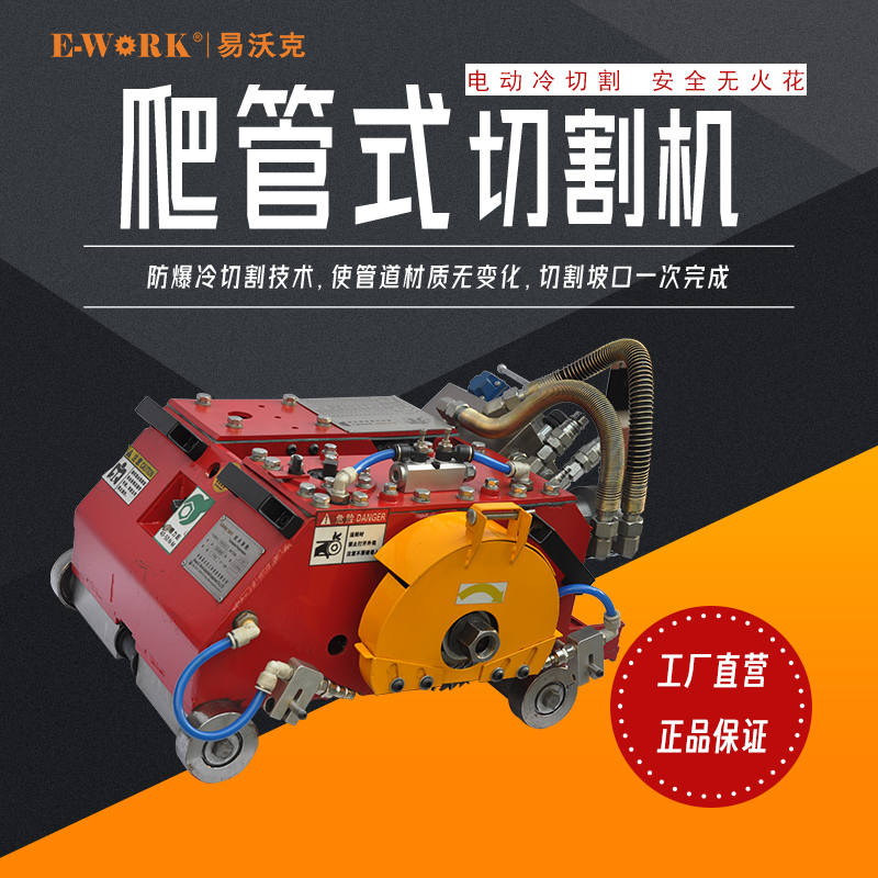 ERCGE11型電動液壓爬管式管道切割坡口機設備(爬管機)是E-WORK易沃克根據管道類服務行業市場及前景,結合本公司技術力量自主研發的管道加工設備。產品集輕便、準確、效率高及模組化設計于一身,充分考慮用戶的需求,是各種類型管道切割和坡口的理想選擇。爬管式管道切割坡口機設備(爬管機)是一種以液壓作為動力源,利用盤銑刀的切割原理,由液壓驅動切割、坡口刀具,先慢速通過螺紋絲桿進給把被切割管道切穿,通過遠程控制切割機器人使其沿管道圓周爬行一圈,完成整個過程管道的切割和坡口的自動化設備,可以加工外徑從6英寸(153mm)到72英寸(1829mm)不同類型的管道。